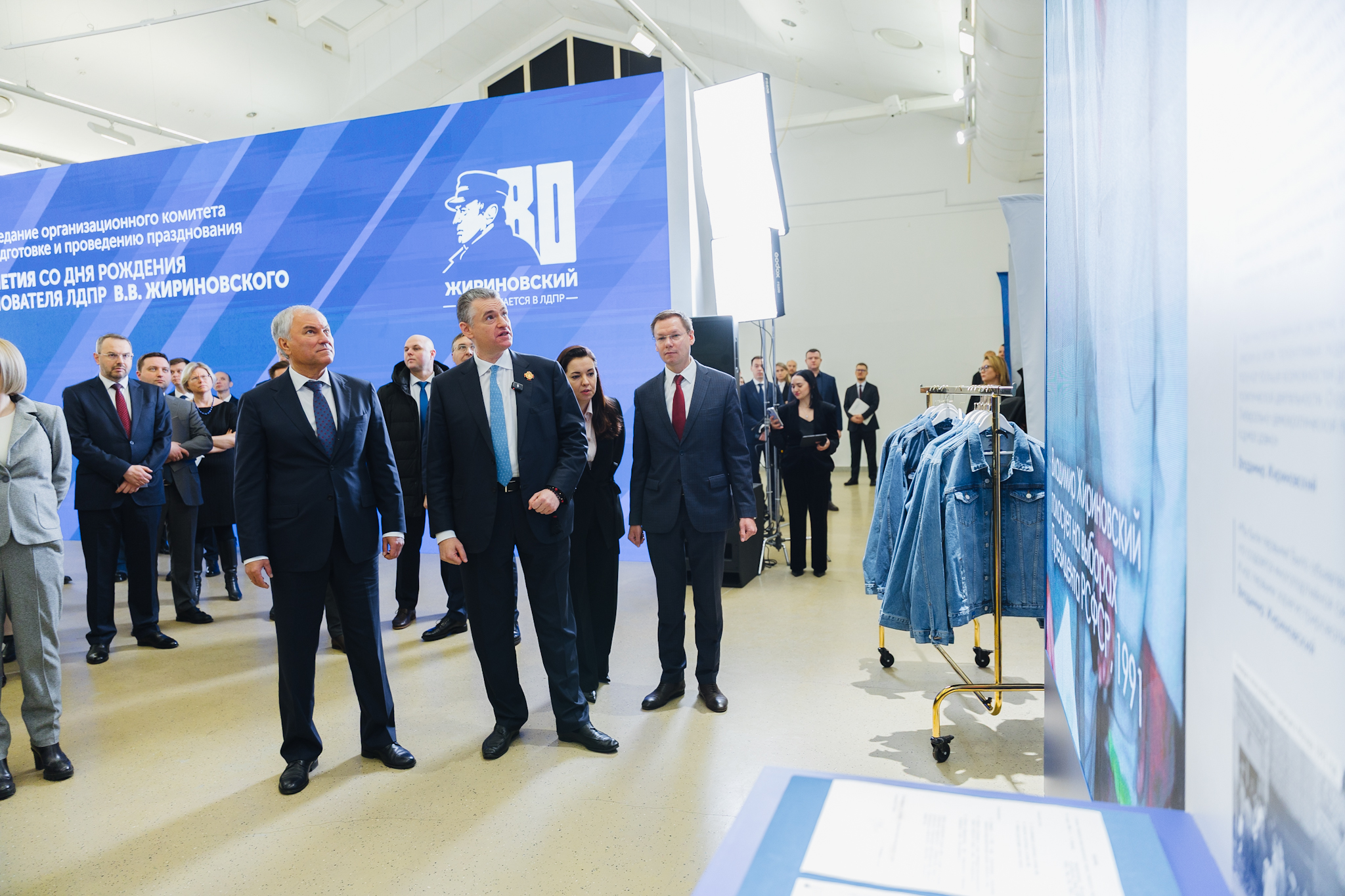 В рамках подготовки к празднованию 80-летия Основателя ЛДПР Владимира Жириновского состоялось третье заседание соответствующего оргкомитета. На нем Председатель партии Леонид Слуцкий вручил членам комитета, в числе которых вице-премьер Дмитрий Григоренко, министр финансов Антон Силуанов и глава Минтранса Андрей Никитин, эксклюзивные памятные подарки — джинсовые куртки («варенки») и кассетные плееры с записями выступлений Жириновского.