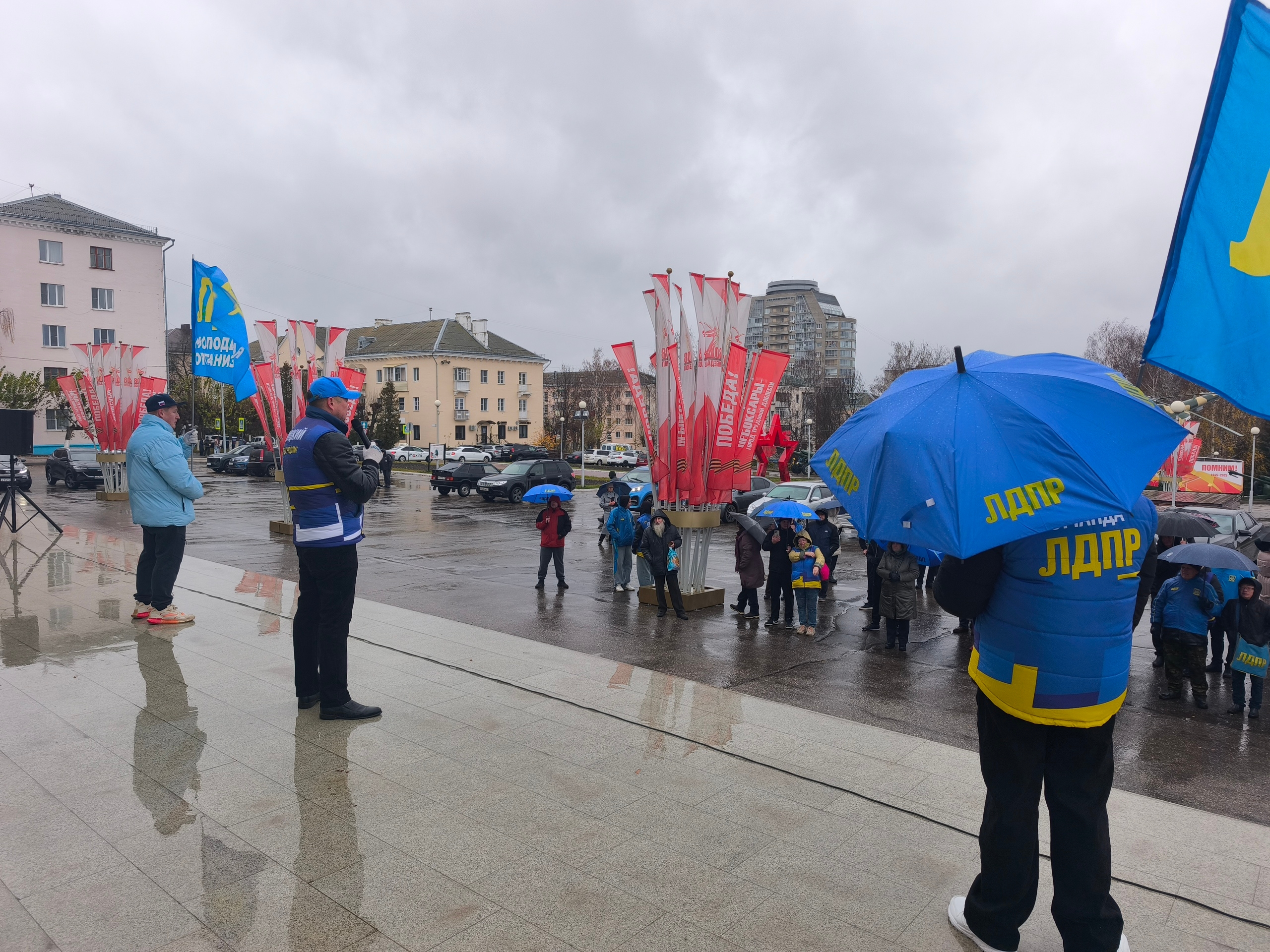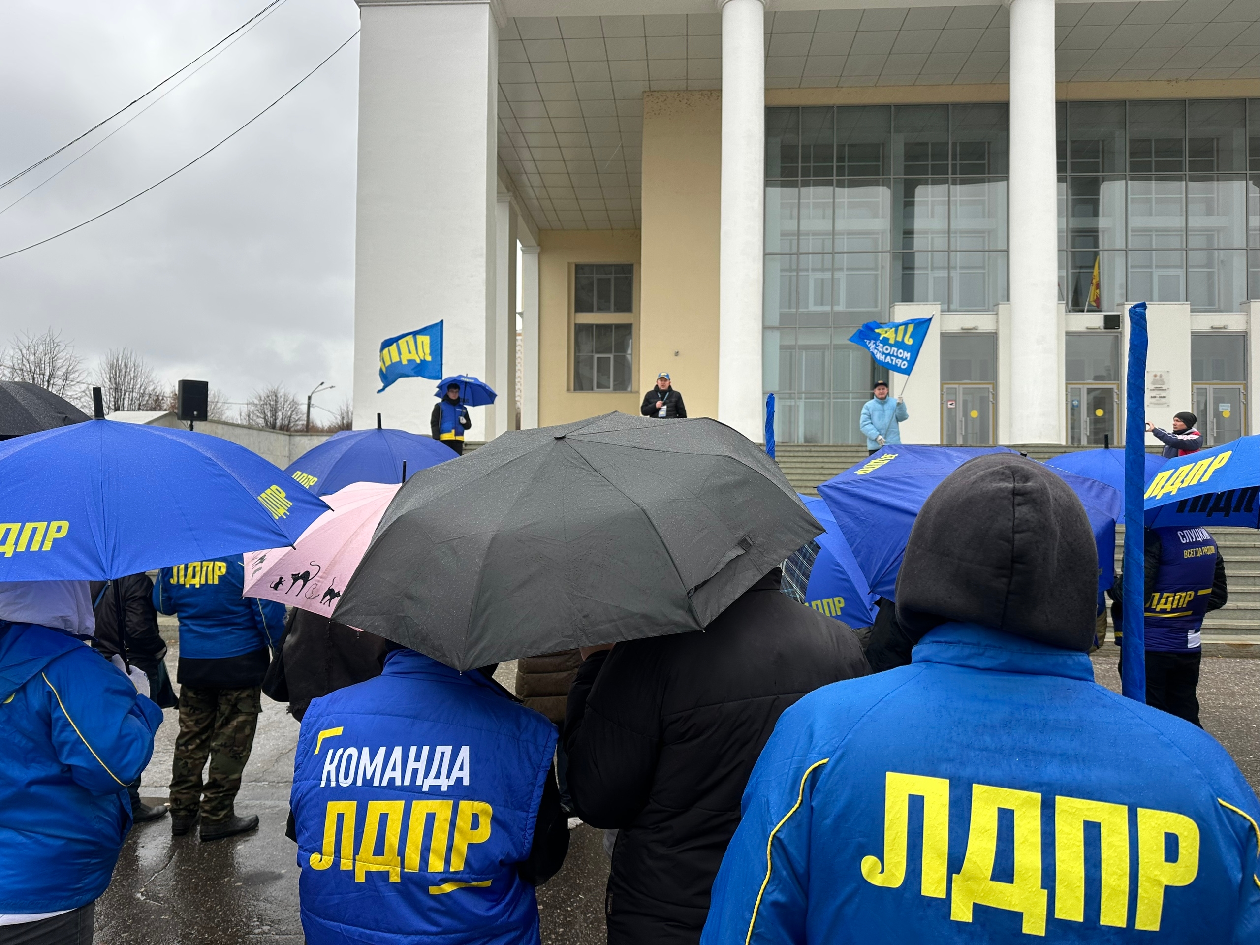 Несмотря на проливной дождь и порывистый ветер, сегодня, в День народного единства, активисты ЛДПР вышли на митинг, чтобы донести свою позицию до общественности и власти. Партийцы не испугалась непогоды, продемонстрировав приверженность принципам партии.