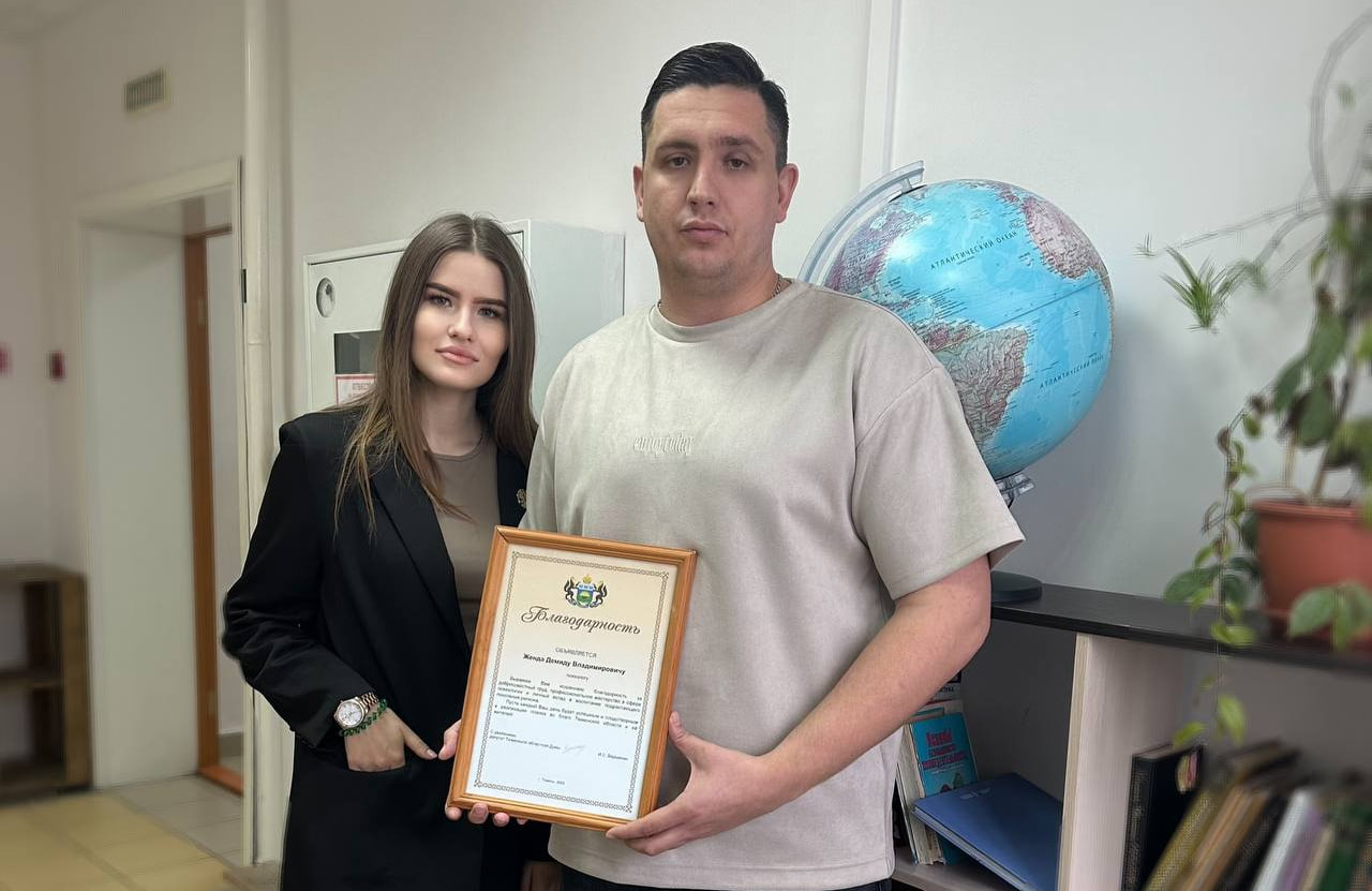 Заместитель координатора Тюменского регионального отделения ЛДПР по идеологической работе, помощник депутата Виктория Черепанова поздравила с профессиональным праздником психолога Демида Женда, вручила Благодарственное письмо за добросовестный труд и обсудила возможность дальнейшего сотрудничества