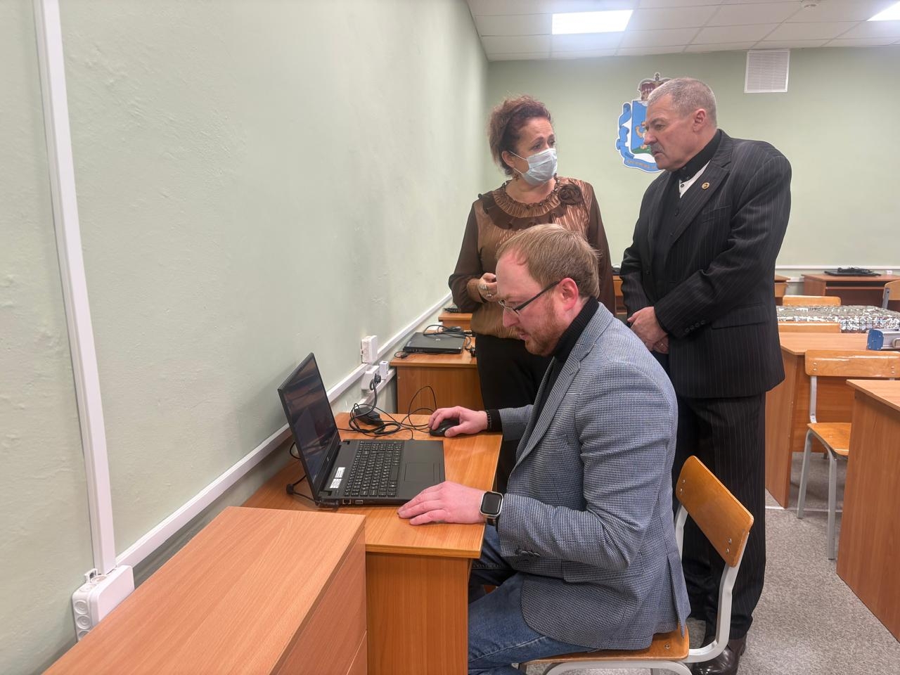 И сегодня, чтобы оценить качество оснащения компьютерных кабинетов, депутат Псковского областного Собрания от ЛДПР Антон Минаков совместно с Иваном Перетятко посетили МБОУ «Средняя школа №7» в городе Острове.