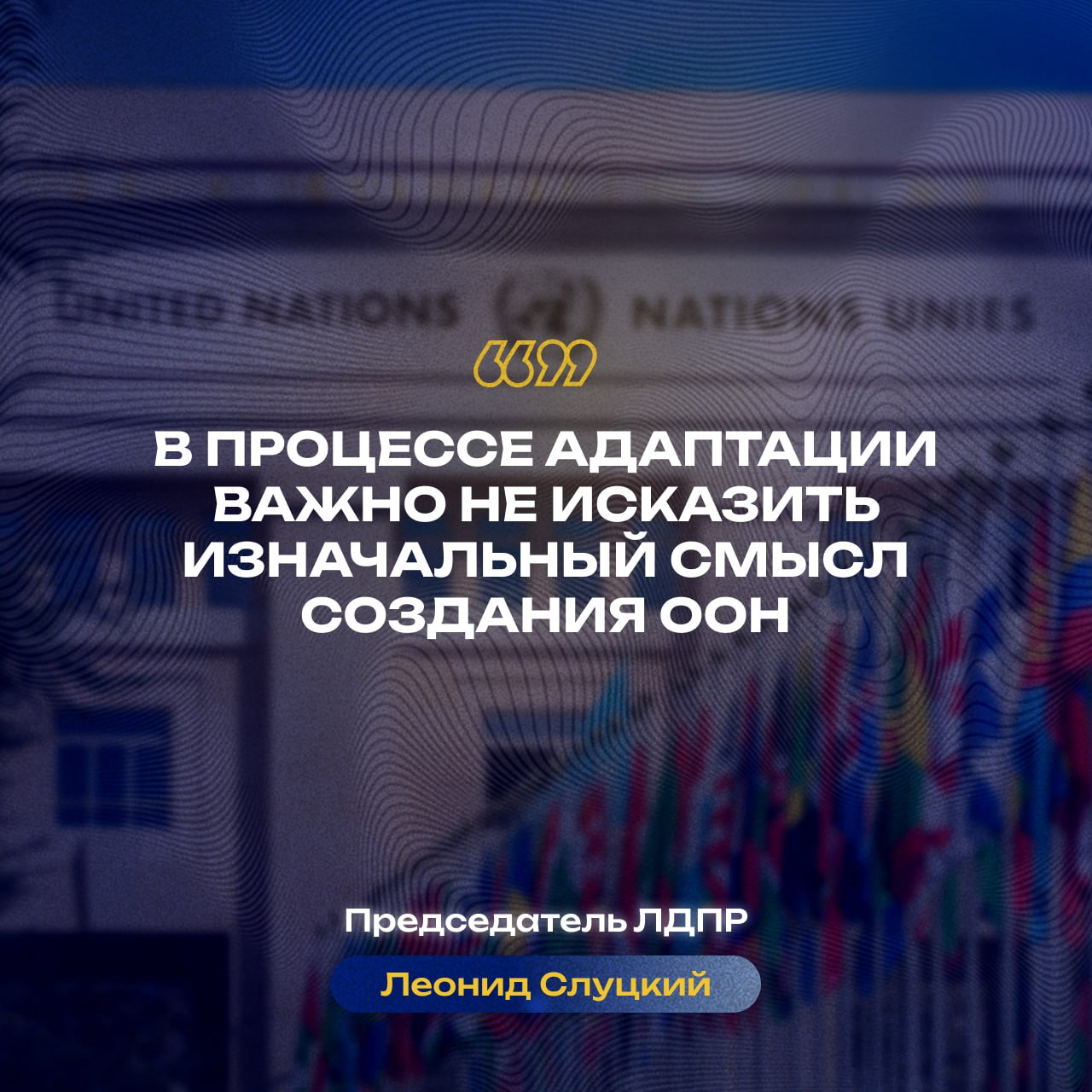 В преддверии 80-летия Организации Объединенных Наций председатель Комитета Госдумы по международным делам Леонид Слуцкий опубликовал статью, в которой представил свой взгляд на роль, значение и проблемы этой международной организации. Материал опубликован в информационном агентстве ТАСС.