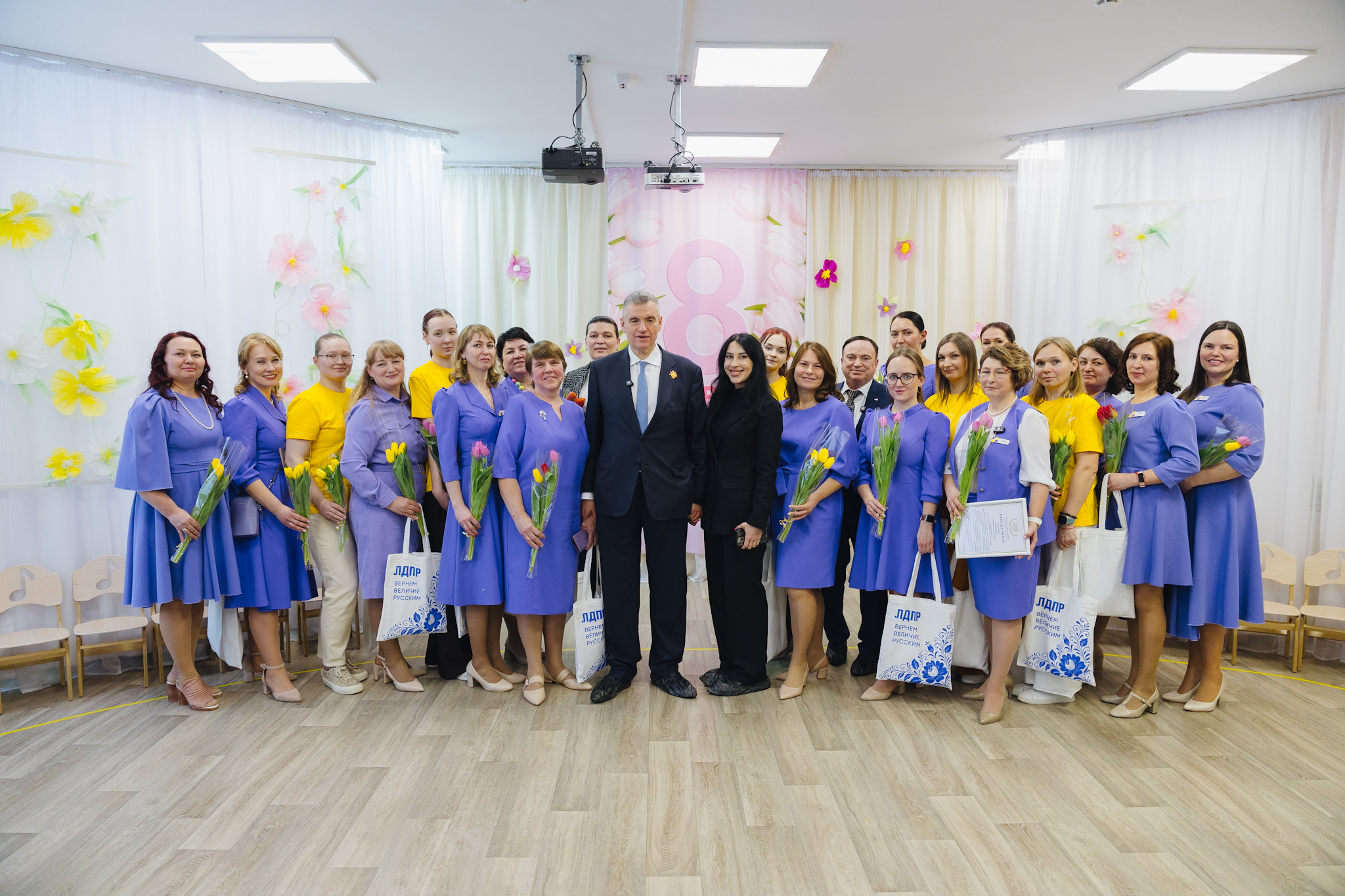 В завершение встречи Леонид Слуцкий поздравил сотрудниц детского сада с наступающим Международным женским днем. Он поблагодарил их за чуткость, терпение и преданность профессии, отметив, что именно женщины создают ту теплую атмосферу, в которой детям комфортно расти и развиваться.