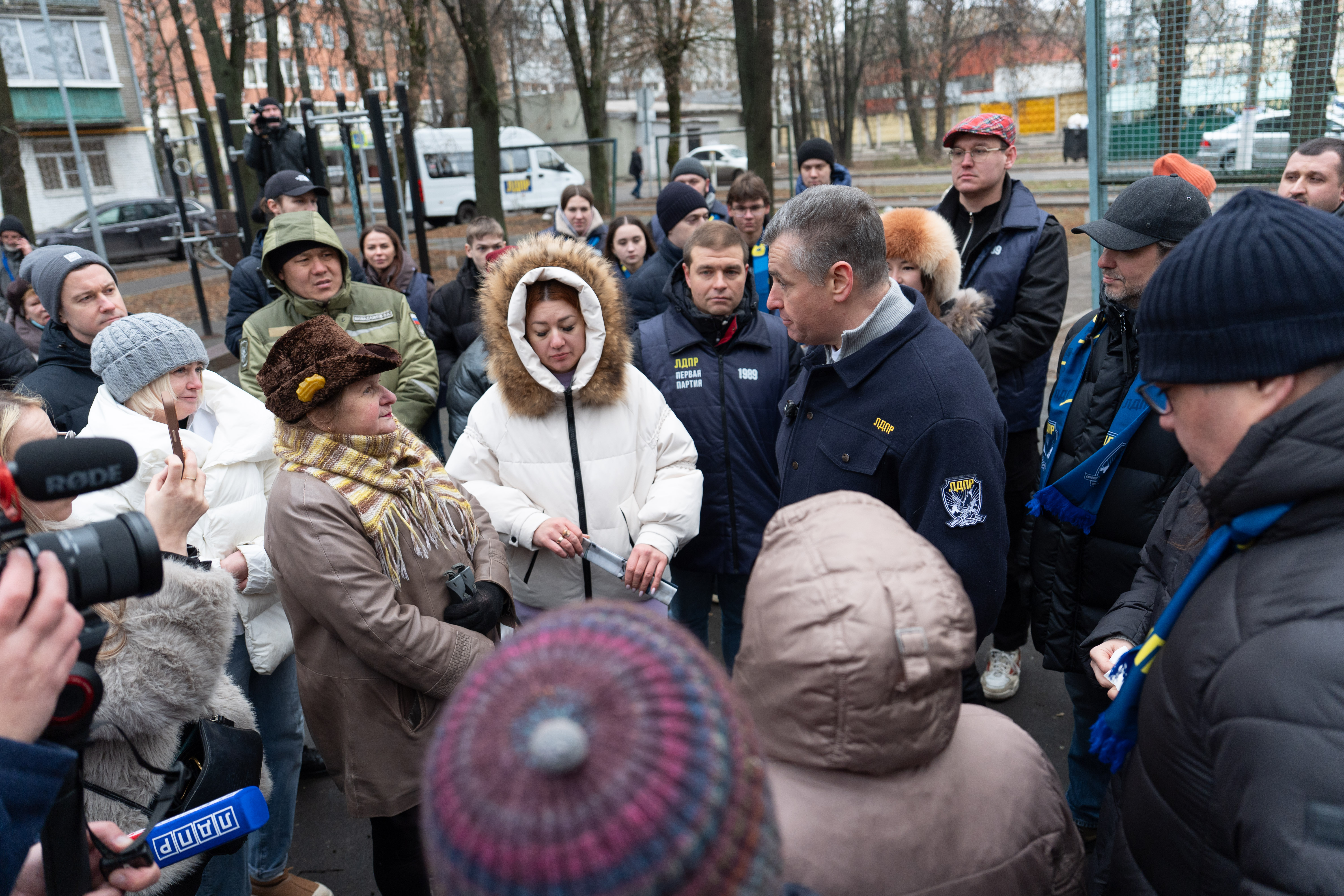 Председатель ЛДПР Леонид Слуцкий провел выездную встречу с жителями многоквартирных домов в подмосковных Химках.