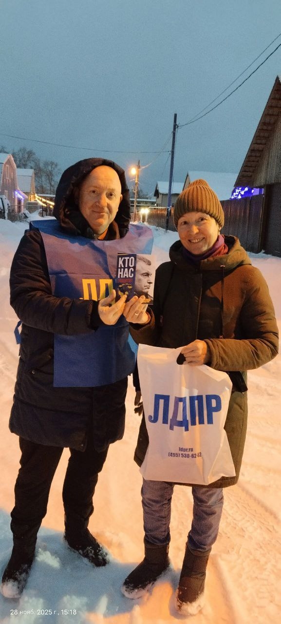 Неугомонные активисты ЛДПР - координатор Усть-Вымского района Алексей Долганский и Кристина Тихонова были на передовой, чтобы донести программу ЛДПР до каждого жителя.