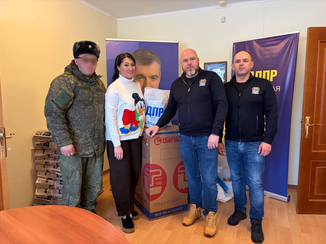В новогодние праздники орловские партийцы совместно с волонтерским объединением «Сила V правде» под руководством Юлии Айдановой передали водонагреватель и новогодние подарки нашим защитникам, находящимся в зоне СВО.