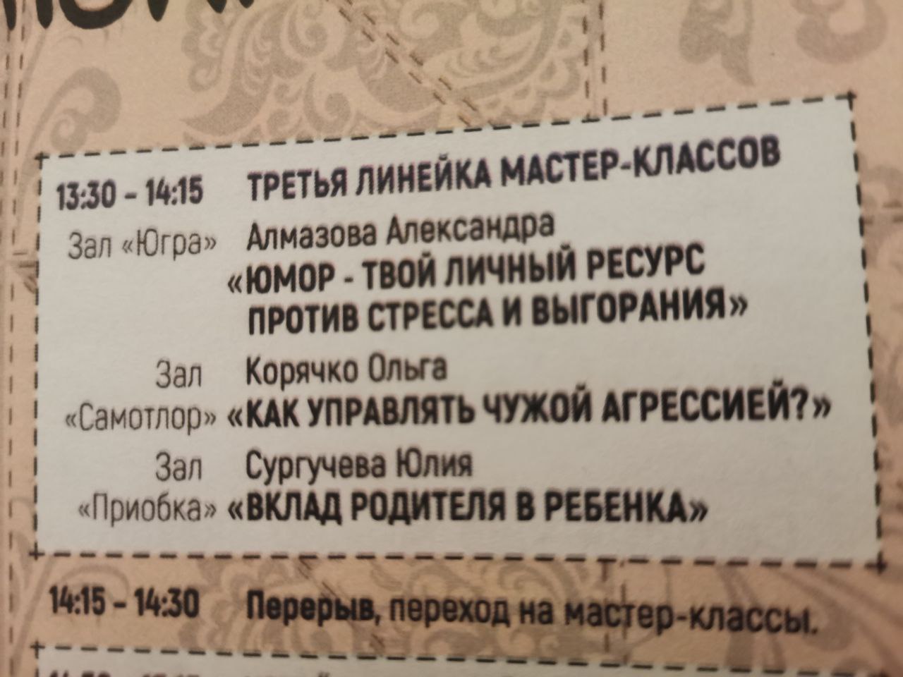 В ходе интерактивного занятия участники фестиваля узнали о том, как можно использовать чувство юмора и позитивное мышление для преодоления сложных жизненных ситуаций, снижения напряжения и повышения личной эффективности. Мастер-класс вызвал живой отклик аудитории и прошёл в атмосфере открытого диалога.