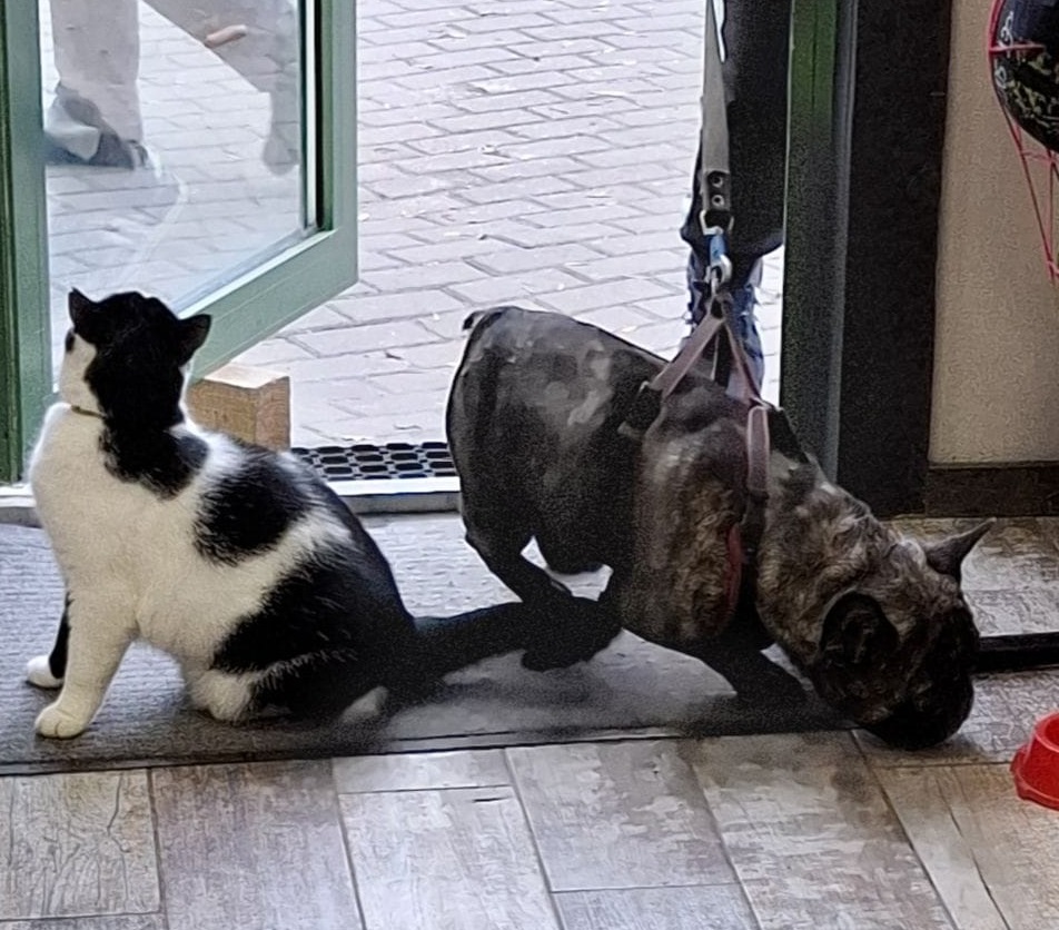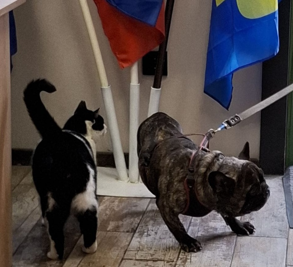 Приятное событие произошло в городском отделении ЛДПР Калининграда — к местной «партийке» кошке Люсе во время традиционного утреннего моциона в гости заглянул её четвероногий приятель, французский бульдог по кличке Тоша.