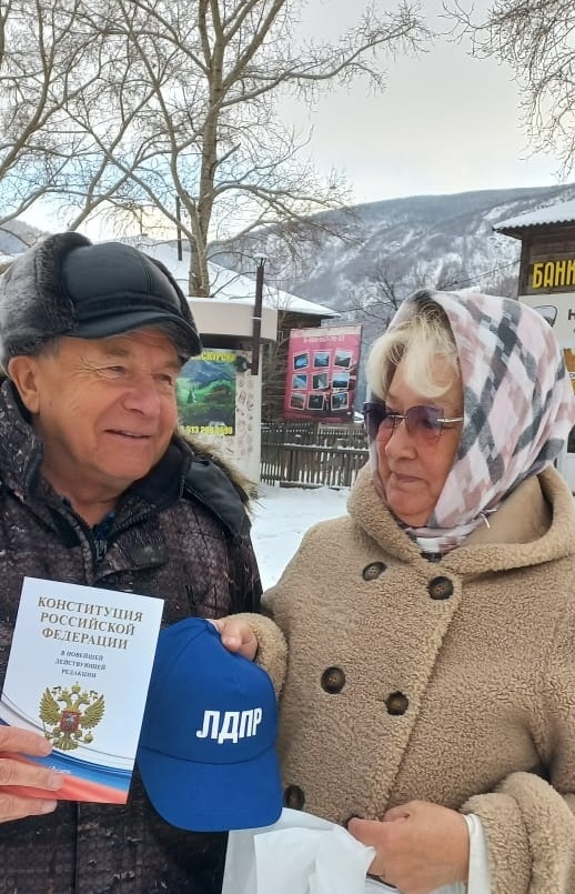 В День Конституции Российской Федерации активисты местного отделения ЛДПР в Улаганском районе вышли на улицы, чтобы поздравить жителей с одним из главных государственных праздников и вручить им памятные подарки.