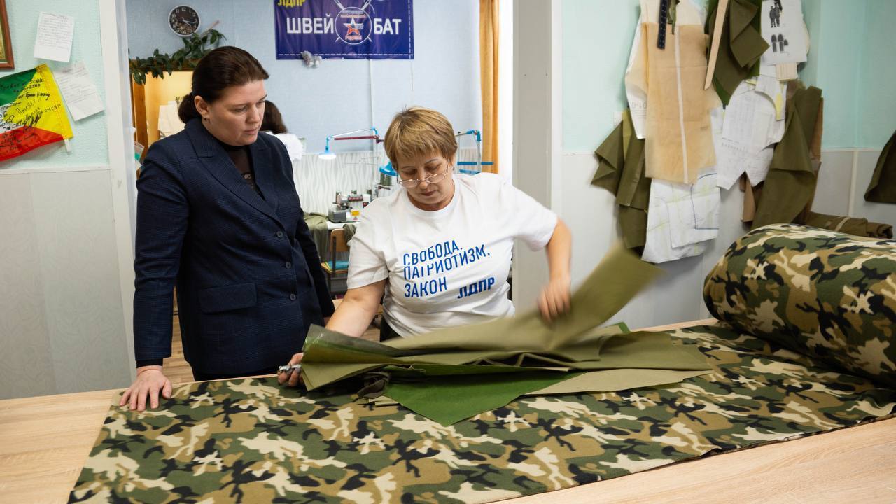 Волонтерский центр "ZOV Родины" появился три года назад в сентябре 2022, когда объявили частичную мобилизацию. Сейчас в центре более 20 швей и 3 закройщика. За все время волонтерами отшито более 10 тысяч комплектов костюмов, в месяц отшивают до 300 комплектов одежды. Ткани для их изготовления предоставляет ЛДПР.