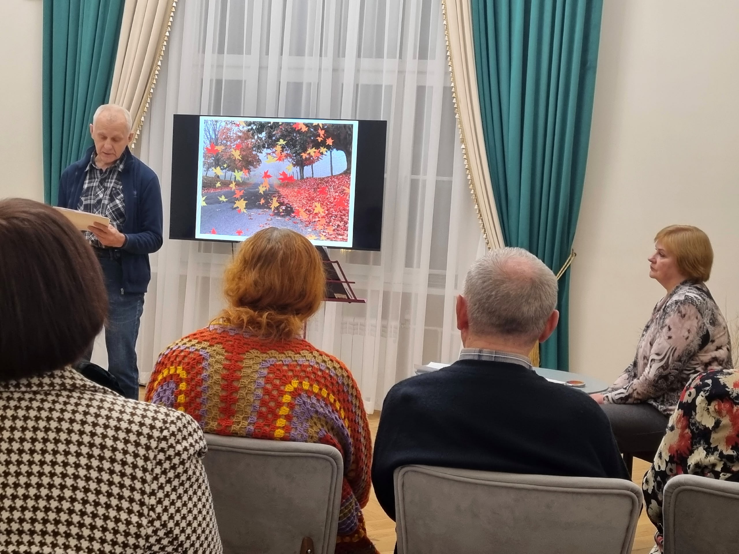 Осень стала главной героиней вечера: каждый участник говорил о ней по-своему — кто-то с грустью, кто-то с благодарностью, а Татьяна Верюжская назвала её «милой подружкой», прочитав собственные стихи. Её выступление было тепло встречено коллегами-поэтами, многие из которых давно известны в литературных кругах Архангельской области.