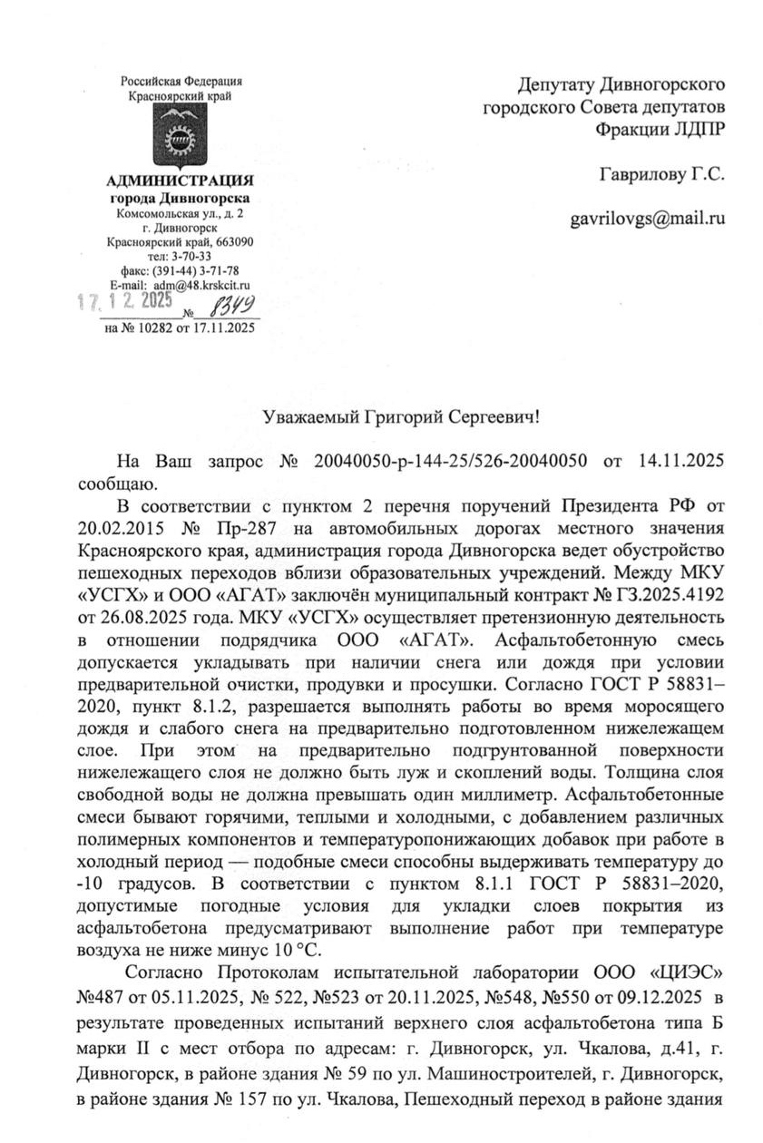 «Безопасность пешеходов, особенно детей, — приоритет. Я надеюсь, что в любом контракте работы, выполненные с нарушениями, приниматься не будут», — подвел итог Григорий Гаврилов.