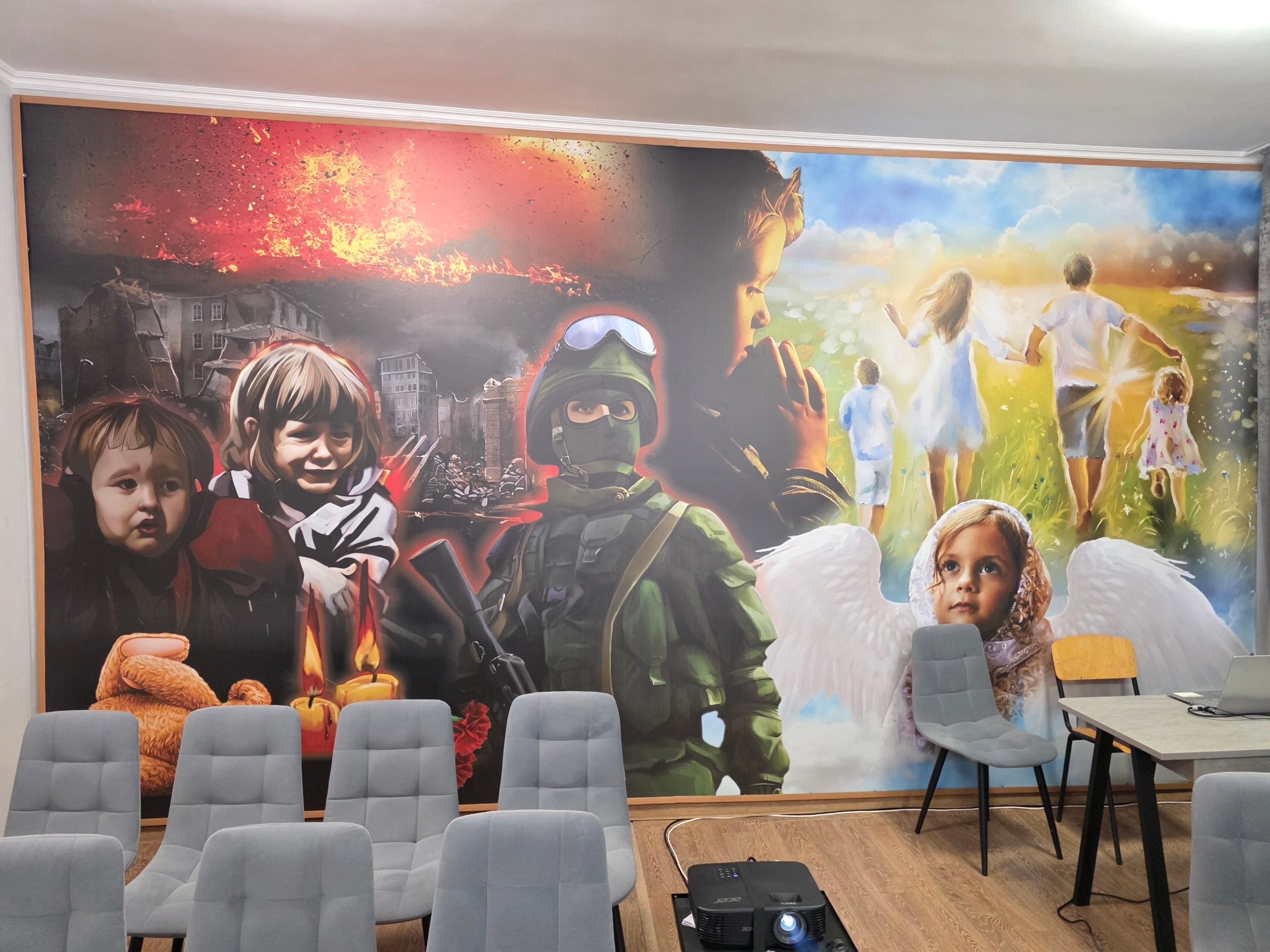 Для волонтёров центра организовали экскурсию. В музейной комнате «Солнечный круг» расположена экспозиция, которая тронула волонтёров до глубины души. Там – портреты, имена и истории ангелов, погибших от жестокости киевских нацистов.