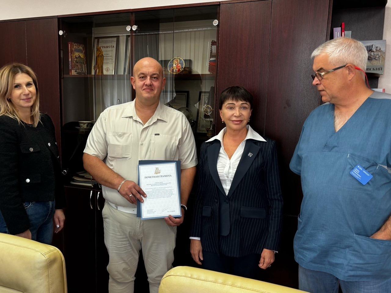 Гостей встретили главный врач учреждения Алексей Михайлович Музыка и его заместитель Георгий Владимирович Кравец. В тёплой и дружественной атмосфере они поздравили весь медицинский коллектив с профессиональным праздником, поблагодарив за самоотверженный труд и ежедневную готовность прийти на помощь.