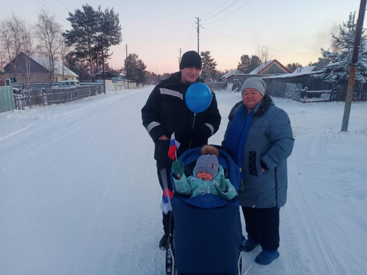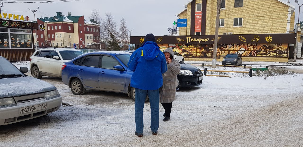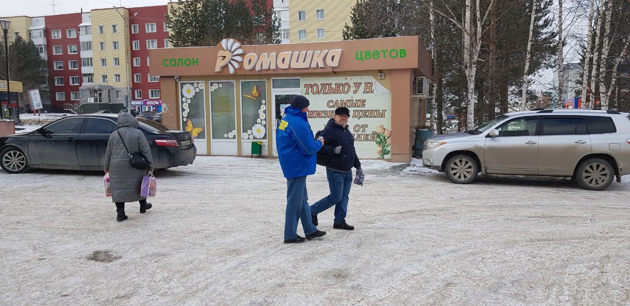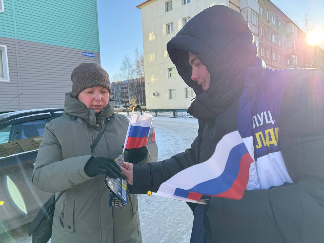 Координатор Нижневартовского районного отделения партии Максим Попов совместно с активистом партии Еленой Пыжовой поздравили с праздником жителей пгт. Излучинск.