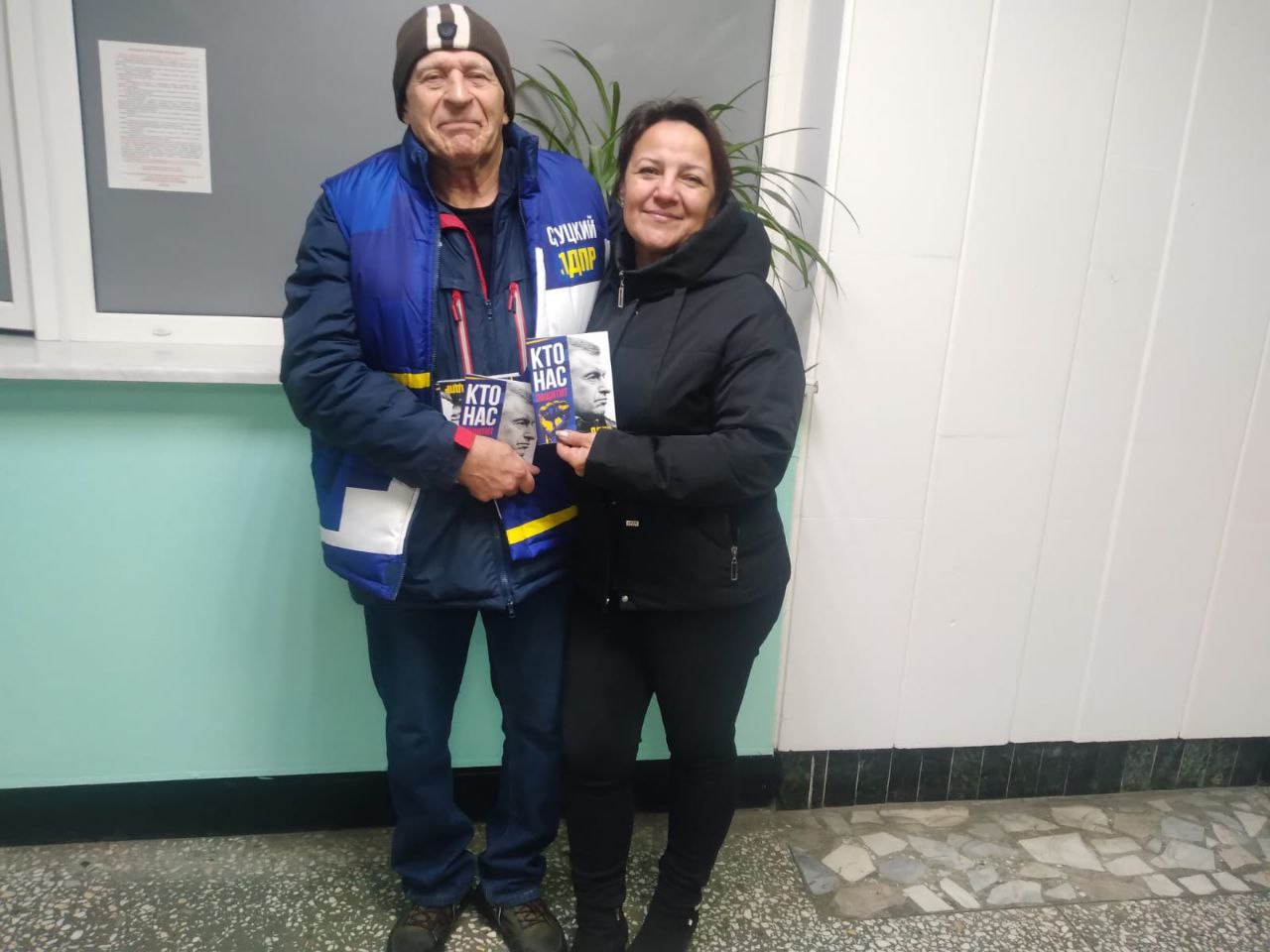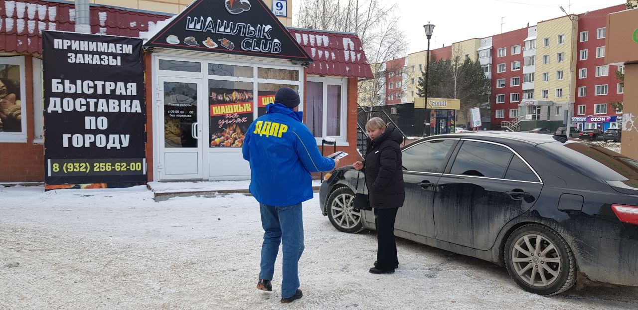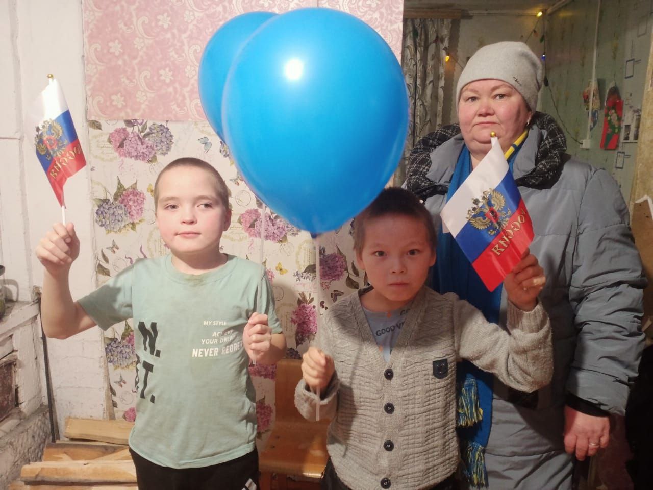 Координатор Нижневартовского районного отделения партии Максим Попов совместно с активистом партии Еленой Пыжовой поздравили с праздником жителей пгт. Излучинск.