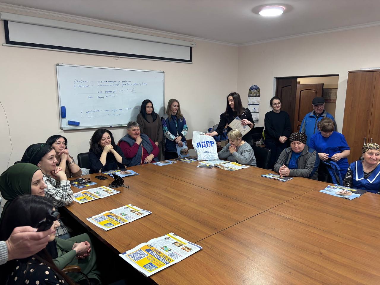 Активисты регионального отделения также раздали сотрудникам праздничные открытки, передали свежие выпуски партийной газеты и рассказали о проходящем розыгрыше.
