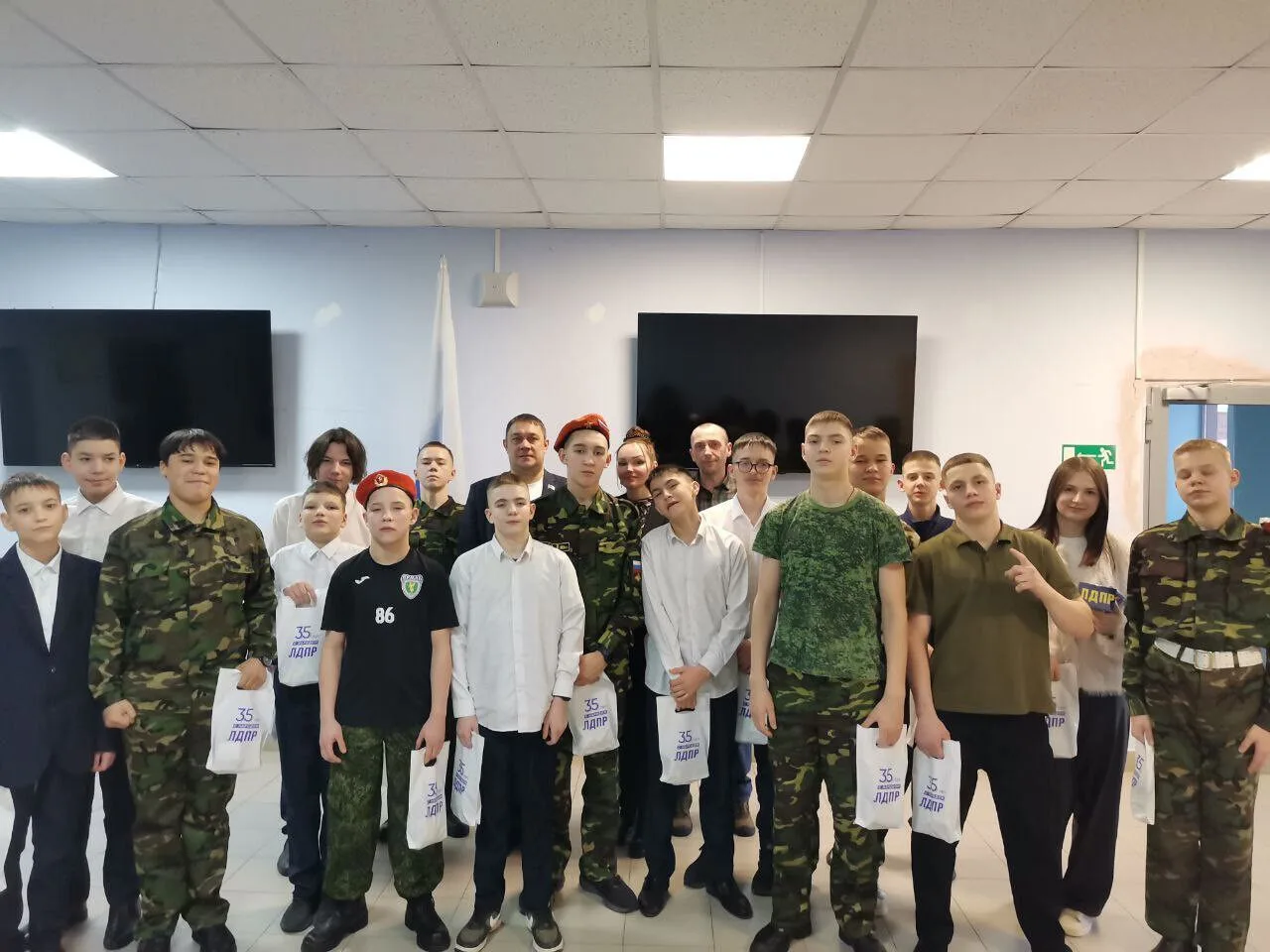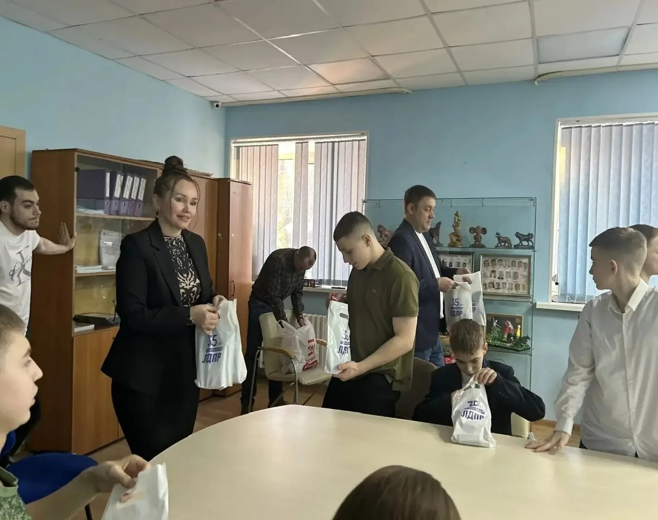 Во время встречи в спецшколе депутаты и активисты ЛДПР поздравили детей с праздником, поблагодарили их за доброту, внимание и поддержку наших солдат, вручили ребятам вкусные подарки от ЛДПР и вместе с ними посмотрели видеоответ от бойцов.